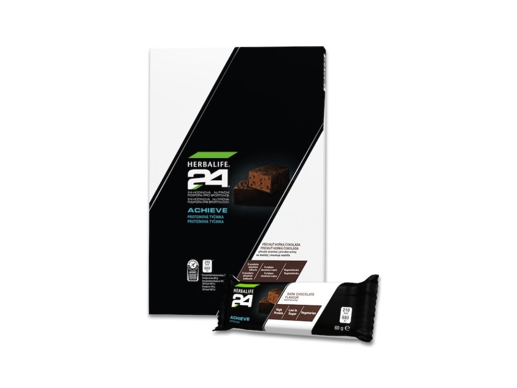 Chceme vám poskytnout výživu, která vám pomůže dosáhnout vašich cílů, ať už jsou jakkoli velké nebo malé. Proteinové tyčinky H24 Achieve konzumujte jednou denně, mezi jídly nebo po tréninku.